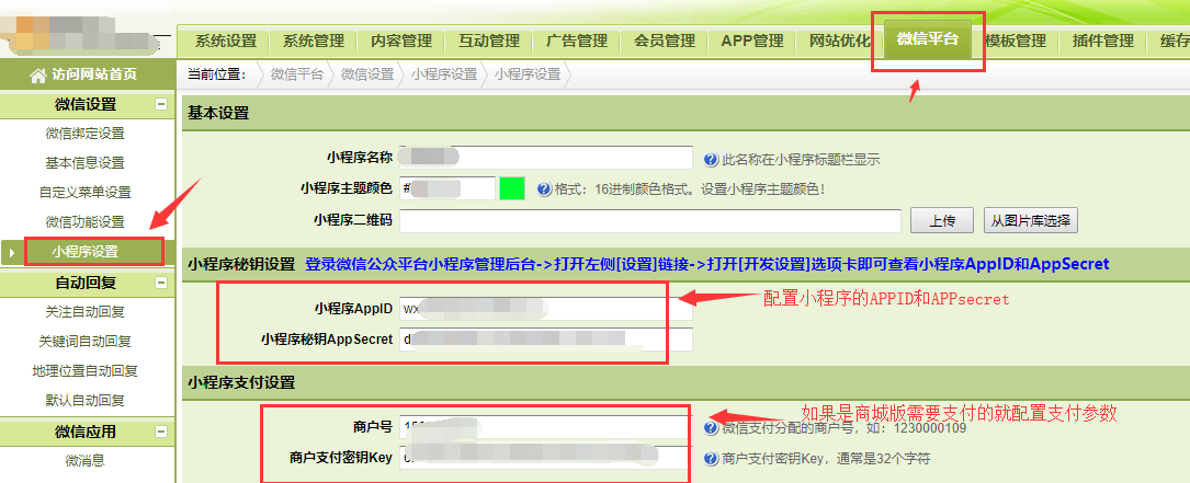 登錄友點(diǎn)網(wǎng)站管理后臺(tái)【微信平臺(tái)】-【小程序設(shè)置】輸入微信小程序的基本參數(shù)配置
