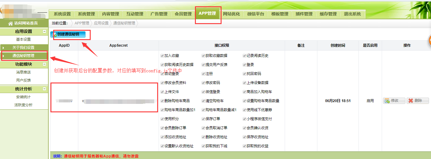 后臺(tái)【APP管理】-【通信秘鑰管理】里面獲取參數(shù)填寫(xiě)到小程序文件 utils/config.js