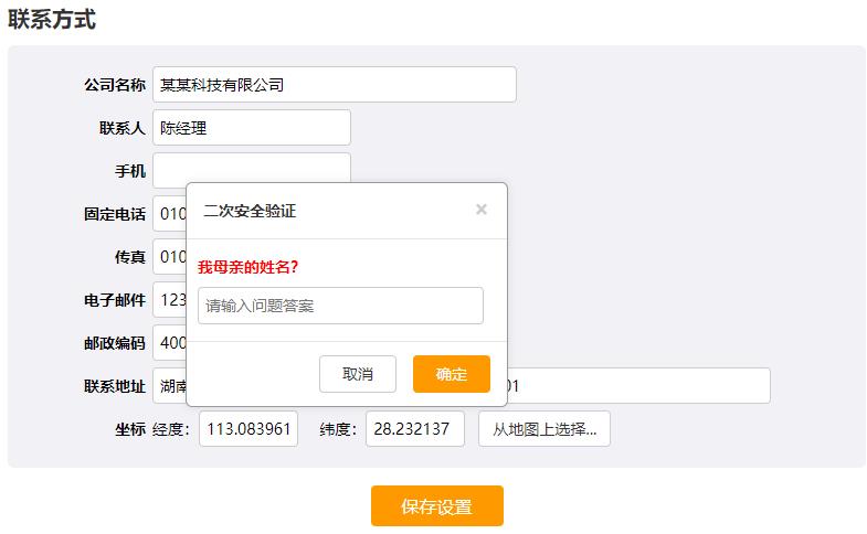 在某些特殊的情況下,如:系統(tǒng)密碼泄露或被注入黑客腳本,被攻擊者非法登錄后臺(tái),這種情況下,如果設(shè)置了二次安全驗(yàn)證問題,攻擊者也無法篡改網(wǎng)站資料。因此,強(qiáng)烈建議設(shè)置二次安全驗(yàn)證問題,系統(tǒng)將更加安全可靠,可有效防止黑客攻擊