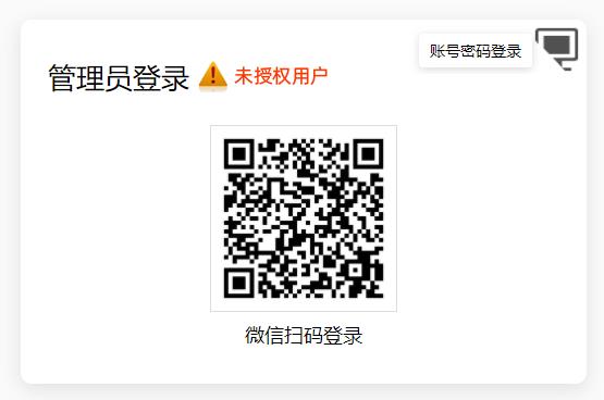 綁定成功以后,退出后臺(tái),返回到登錄頁面,即可看到掃碼登錄,點(diǎn)擊右上角圖片可以在賬號(hào)密碼登錄和掃碼登錄之前進(jìn)行切換