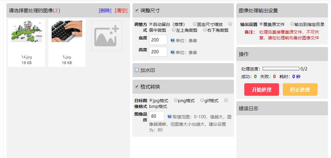 可以批量處理(改變尺寸、加水印、瘦身、格式轉換等)網站圖片